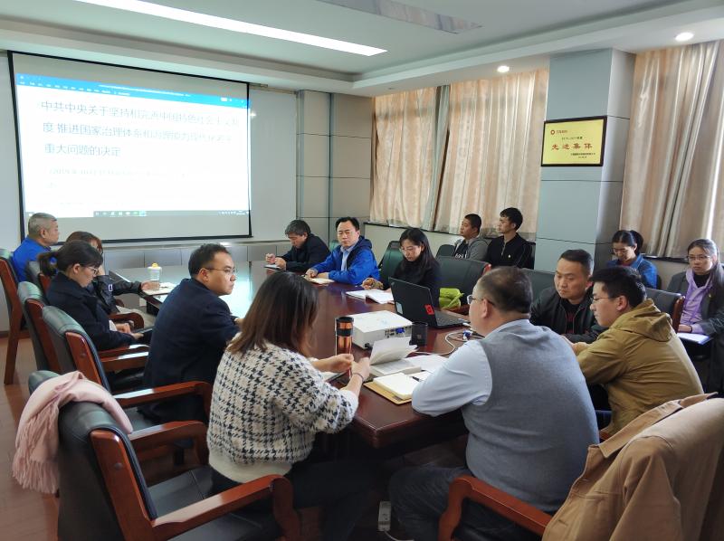 會議上,孫峻同志系統(tǒng)介紹了十九屆四中全會召開的詳細(xì)信息,帶領(lǐng)各位黨員重點(diǎn)學(xué)習(xí)《中共中央關(guān)于堅(jiān)持和完善中國特色社會主義制度 推進(jìn)國家治理體系和治理能力現(xiàn)代化若干重大問題的決定》和《習(xí)近平:關(guān)于〈中共中央關(guān)于堅(jiān)持和完善中國特色社會主義制度推進(jìn)國家治理體系和治理能力現(xiàn)代化若干重大問題的決定〉的說明》,并結(jié)合近期國內(nèi)外政治經(jīng)濟(jì)形勢及重大事件,詳細(xì)闡述了全會《決定》的具體內(nèi)容。